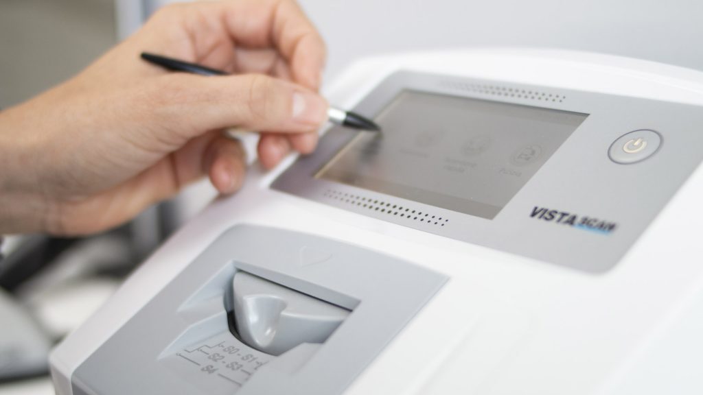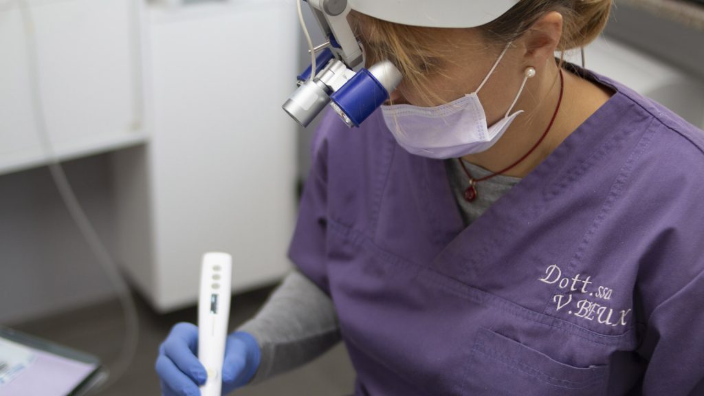 L’utilizzo di tecnologie all’avanguardia permette di raggiungere risultati ottimali non solo nella fase di cura ma anche in quella diagnostica. In questo campo, lo Studio Odontoiatrico Beux è uno dei primi centri ad aver utilizzato il DIAGNOcam, uno scanner laser endorale per la diagnosi delle carie. Le immagine generate dal DIAGNOcam, senza alcuna emissione di raggi X, mostrano in maniera dettagliata le strutture delle corone dei denti sopra le gengive consentendo di rilevare più precocemente le carie, comprese quelle iniziali nascoste e le infiltrazioni di precedenti otturazioni che con i metodi diagnostici tradizionali non sarebbero diagnosticabili se non in stadio più avanzato.
